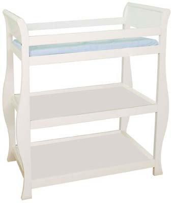 The Classic Baby Changing Table from Delta is Solid hardwood with classic white finish. Open design for easy accessibility. Two fixed shelves for storage & changing area is equipped with built-in safety strap. Meets all US legal safety standards.High quality white finishSolid hardwood constructionTwo fixed shelves for storageOpen design for easy accessibilityHigh railsIncludes mattress pad and safety strapSome minor assembly required